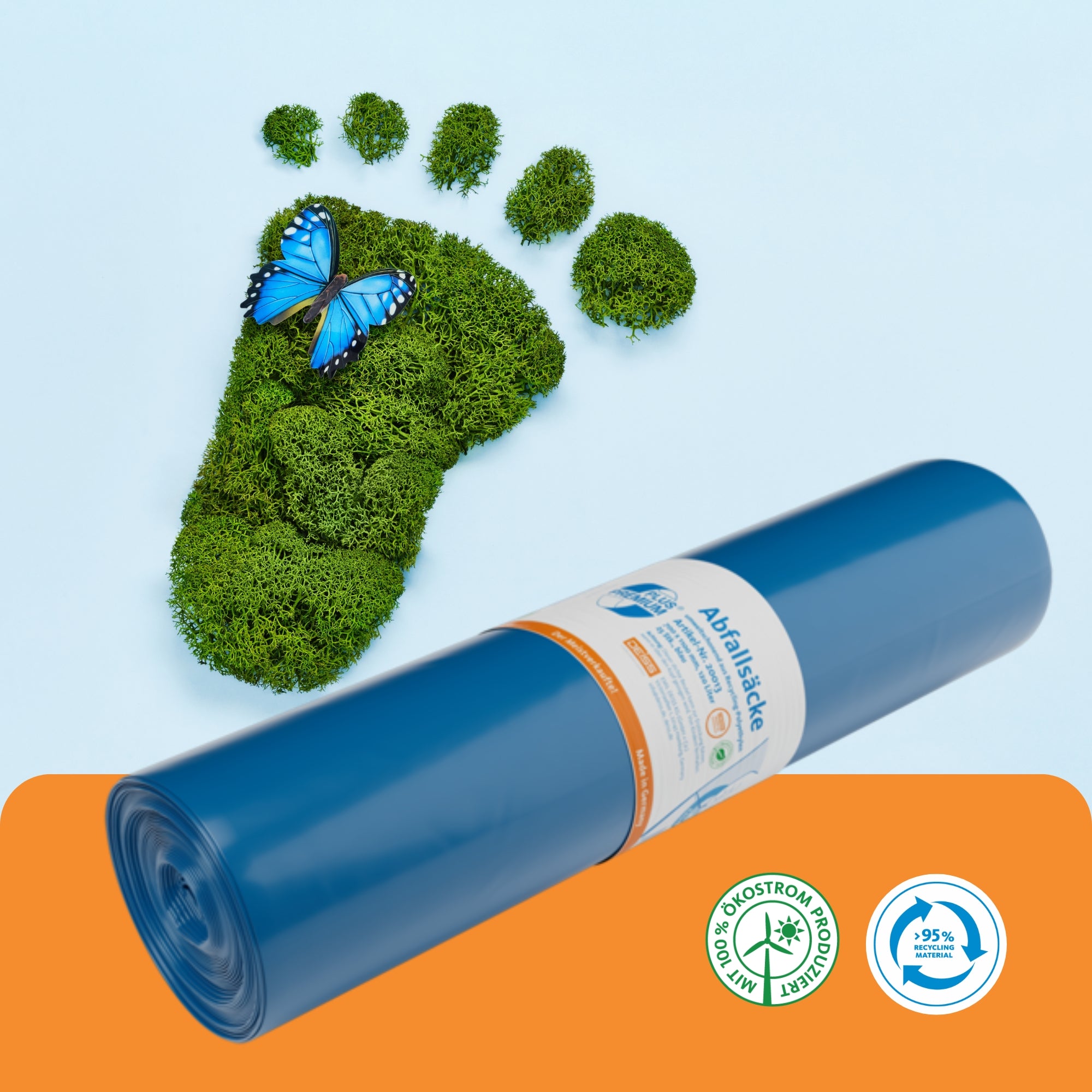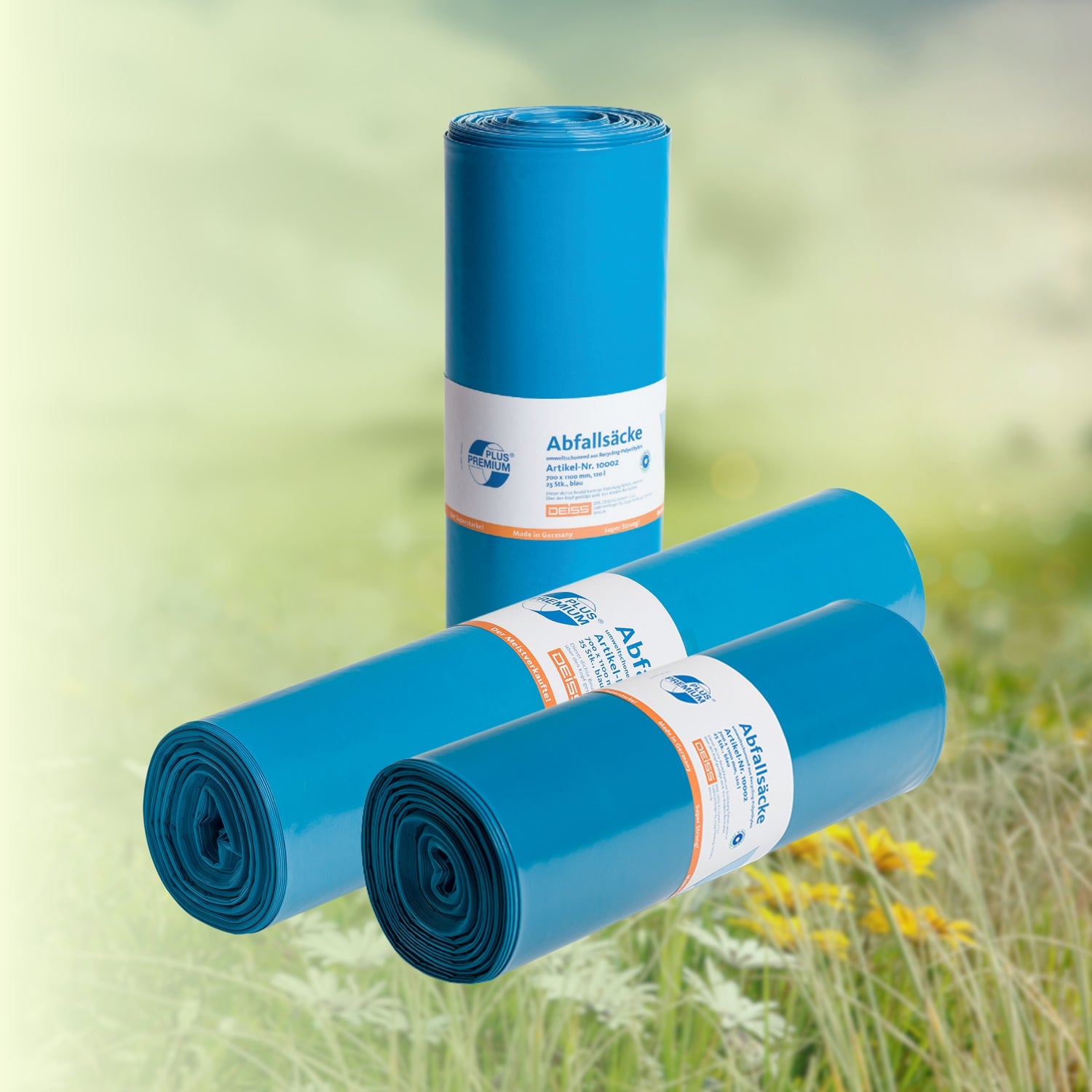 The eco-label "Blue Angel" on Deiss garbage bags indicates products that are manufactured in a particularly environmentally friendly and resource-saving manner. These garbage bags are made from recycled materials and help reduce plastic consumption and protect the environment.