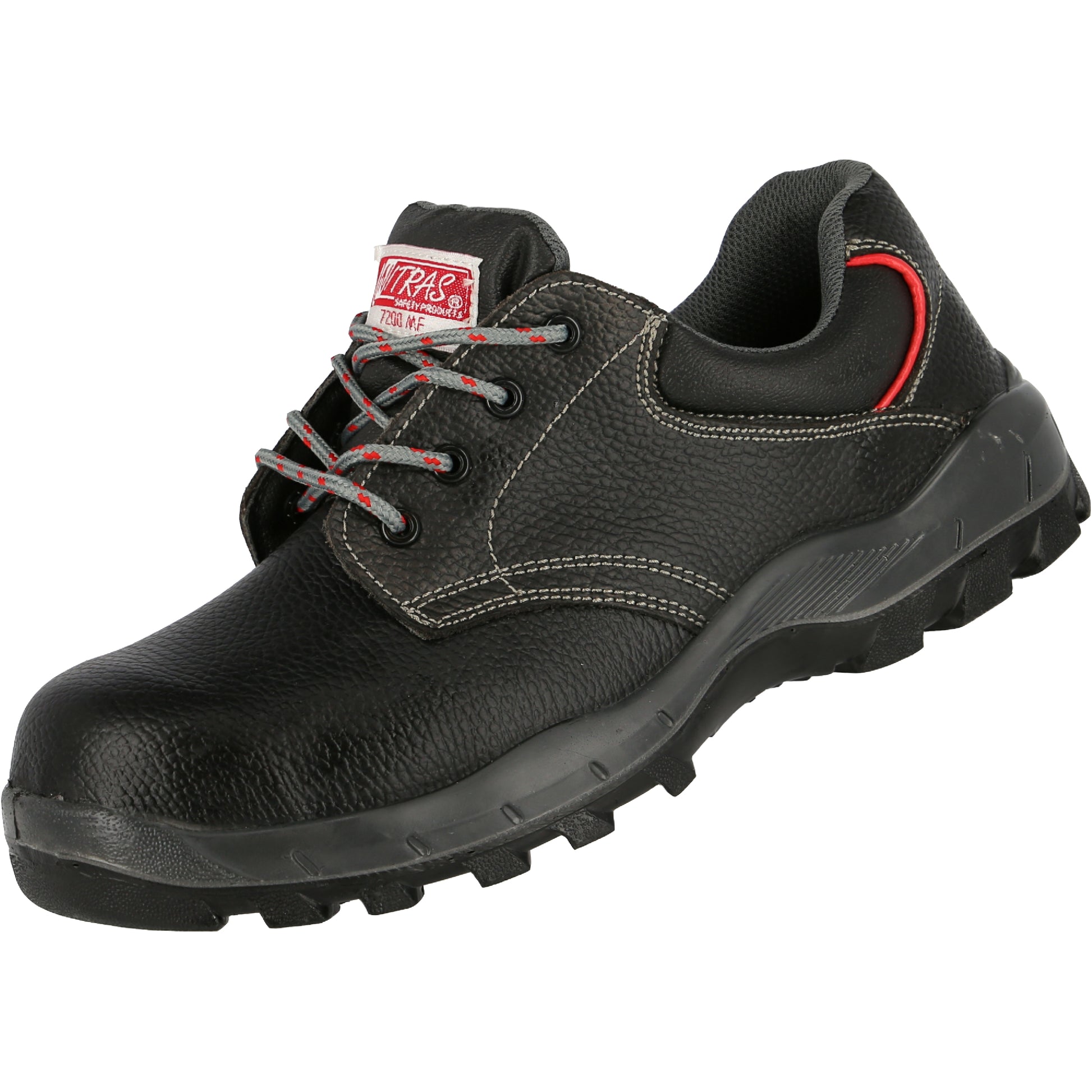 Der NITRAS STEP MF Sicherheitshalbschuh vereint maximale Sicherheit mit Komfort und Langlebigkeit. Gefertigt aus robustem, schwarzem Vollleder (Farbcode: 1000) und ausgestattet mit einer widerstandsfähigen PU/TPU-Laufsohle in Grau/Schwarz, bietet dieser Schuh zuverlässigen Schutz auf jedem Untergrund. Die Fiberglas-Zehenkappe und eine durchtrittsichere textile Zwischensohle sorgen für umfassenden Schutz, während die ergonomisch geformte Einlegesohle und die abgeflachte Ferse eine natürliche Abrollbewegung unterstützen. Dank bester Rutschhemmung (SRC) sowie der Prüfung nach DGUV Regel 112-191, Typ 1 und PSA-Risikokategorie II ist der Schuh optimal für anspruchsvolle Arbeitsbedingungen geeignet.