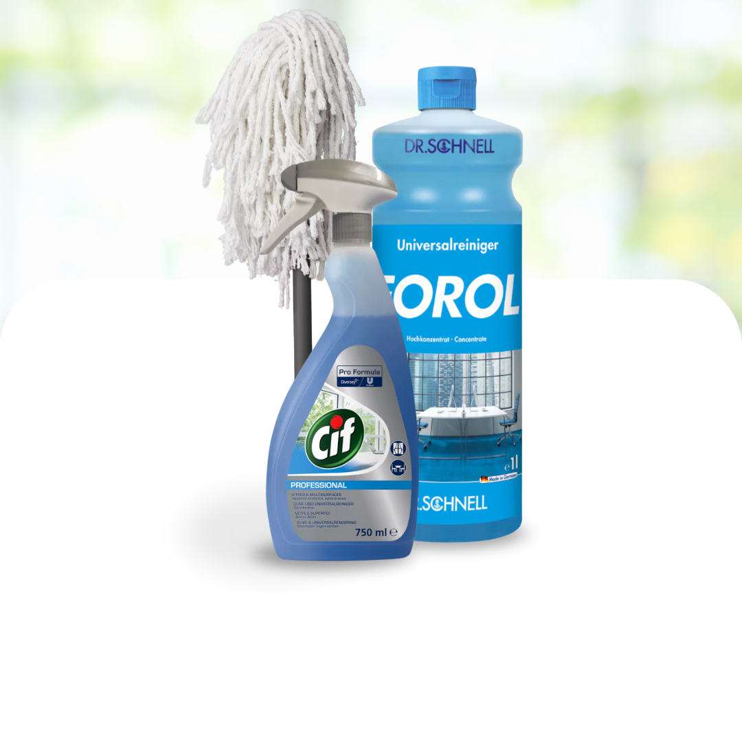 • Fensterreiniger: Sorgt für streifenfreie Klarheit auf Glasflächen.