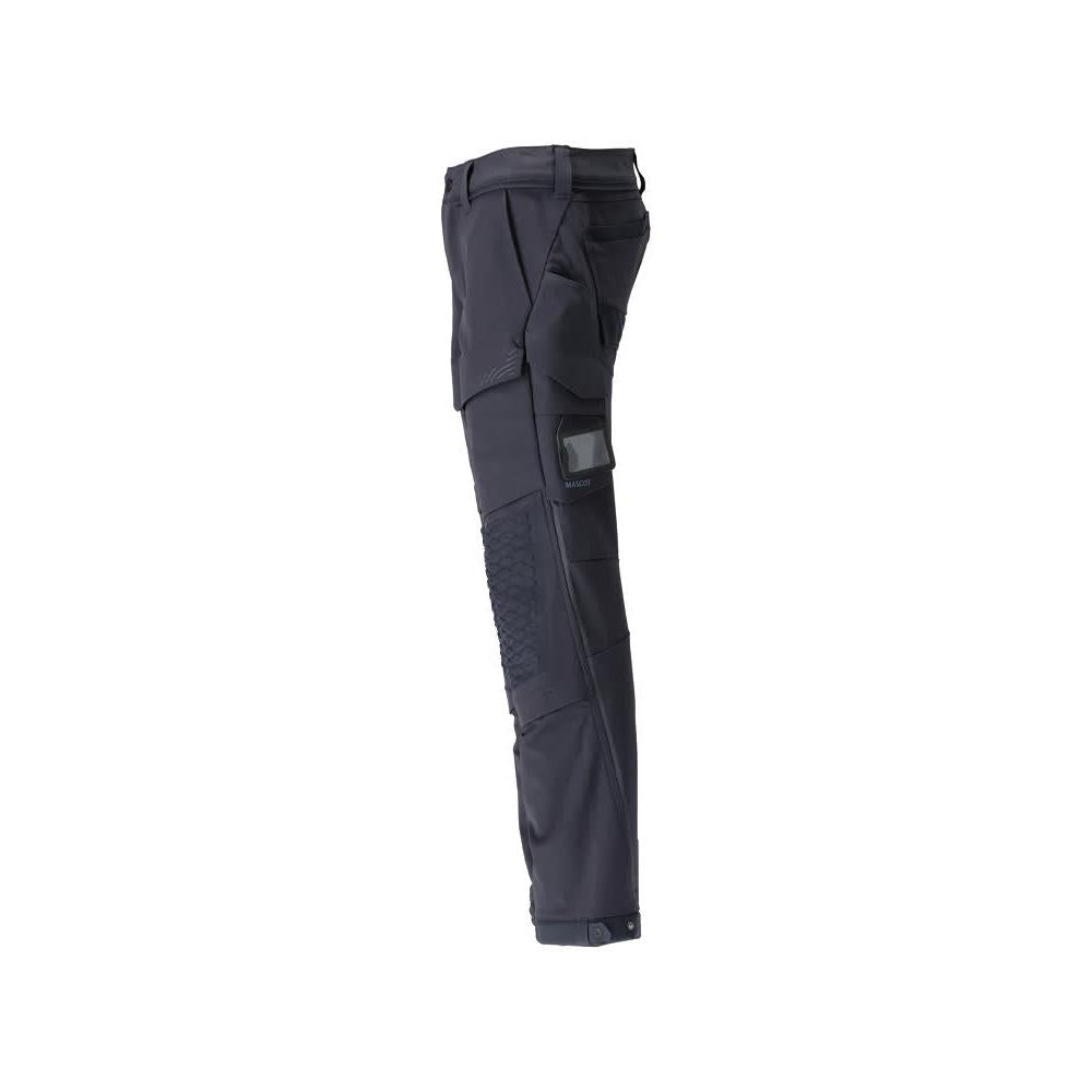 Die schwarzblaue Stretch Hose überzeugt durch ihr leichtes, aber äußerst robustes Gewebe, das mit einem wasserabweisenden Finish ausgestattet ist. Dank ergonomisch geformter Hosenbeine, zweifacher und dreifacher Kappnähte sowie verstärkten Bereichen aus CORDURA®-Gewebe bietet sie höchsten Tragekomfort und Langlebigkeit. Die Hose ist für das praktische Click Pocket System vorbereitet und verfügt über zahlreiche funktionale Taschen, darunter eine Schenkeltasche mit Handyfach, Magnetverschluss sowie einen integrierten, abnehmbaren ID-Kartenhalter. Verstellbare, belüftete Knietaschen aus CORDURA®, Reflexeffekte und die OEKO-TEX® STANDARD 100 Zertifizierung runden das innovative Design ab.