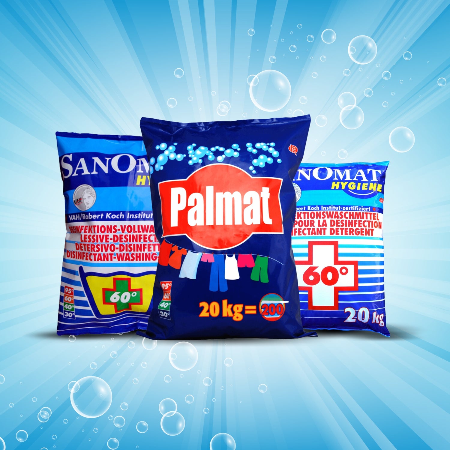 Das Rösch Sanomat Desinfektionswaschmittel eignet sich ideal für hygienisch sensible Bereiche – etwa in Pflegeeinrichtungen oder medizinischen Betrieben. Es kombiniert Wasch- und Desinfektionsleistung in einem Schritt und wirkt zuverlässig gegen Bakterien und Keime. Das Palmat Universalwaschmittel ist vielseitig einsetzbar und reinigt selbst stark verschmutzte Wäsche fasertief, ohne Farben oder Stoffe zu strapazieren. Das Danny Lemon Power Geschirrspülmittel wiederum überzeugt mit starker Fettlösekraft und angenehmem Duft – ideal für Küchen, Gastronomie und Großhaushalte.
