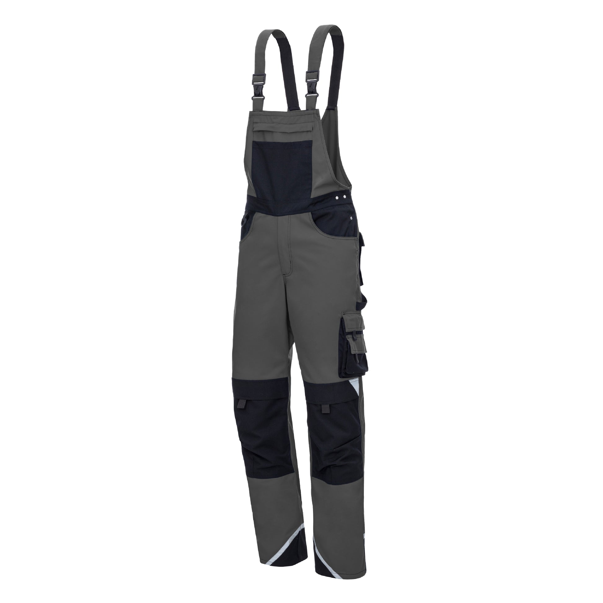 La salopette NITRAS MOTION TEX PLUS in grigio/nero (codice colore: 1210) è la scelta perfetta per chi non vuole scendere a compromessi sul proprio abbigliamento da lavoro. Con un peso di 280 gr/mq, offre un materiale traspirante che assicura un elevato livello di comfort. La cintura elastica garantisce una vestibilità ottimale, mentre i rinforzi in tela sulle tasche delle gambe, delle ginocchia e posteriori, nonché sulla tasca esterna della pettorina e sui polsini delle gambe garantiscono una maggiore durata. Le robuste cuciture triple e gli elementi riflettenti aumentano la visibilità e la durata dei pantaloni. Extra pratici come tasche sulle cosce con patta, una tasca per metro con tasca applicata, una tasca interna sulla pettorina con cerniera YKK e tasche esterne applicate offrono ulteriore spazio di archiviazione. La salopette è inoltre dotata di tasche sulle ginocchia per l'imbottitura con inserimento superiore, passante per martello, anello a D, robuste chiusure a clip e polsini con cinturino elastico. La salopette è certificata OEKO-TEX STANDARD 100® e offre protezione opzionale per le ginocchia 76K (EN 14404).