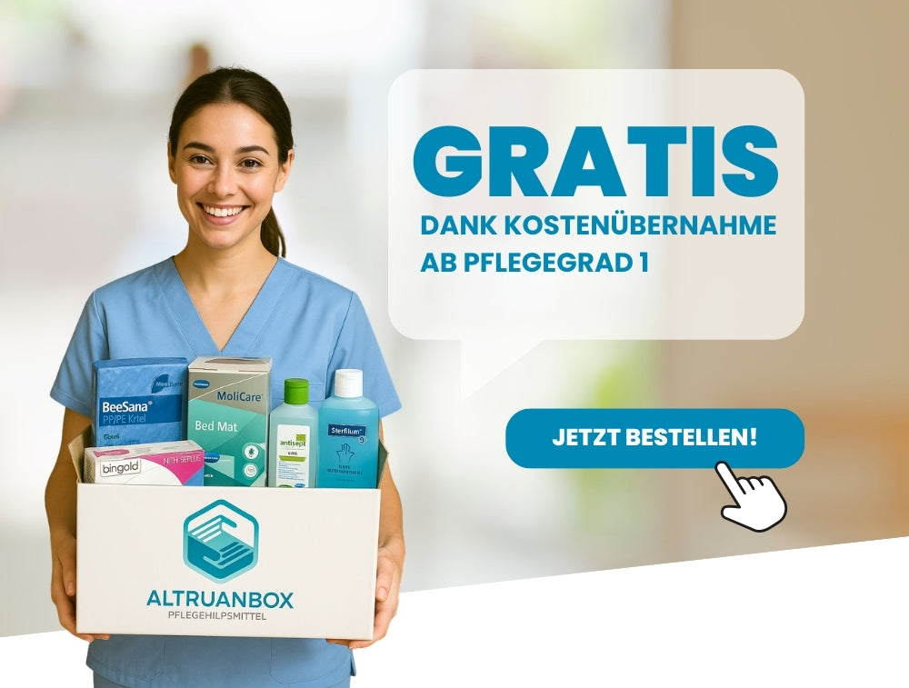 Die Altruan Pflegehilfsmittelbox kann von allen pflegebedürftigen Personen mit dem Pflegegrad 1 beantragt werden.